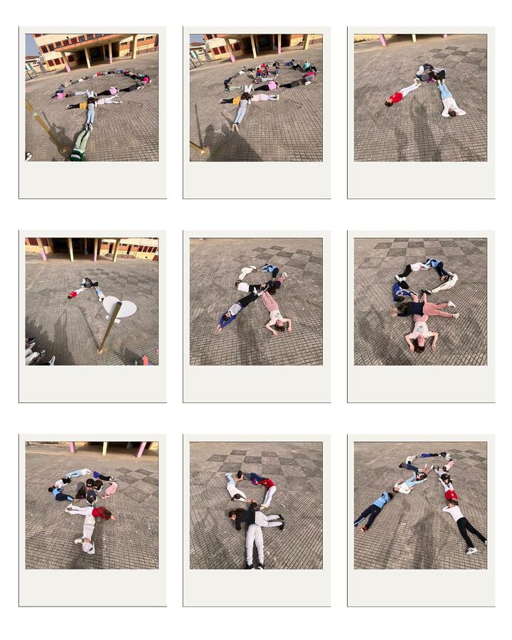 Con motivo de la llegada del 8 de Marzo, día de la Mujer, l@s alumn@s de cuarto de primaria (A y B), han realizado en nuestro patio diferentes formas con sus cuerpos que simbolizan los diferentes símbolos del Día de la Mujer.